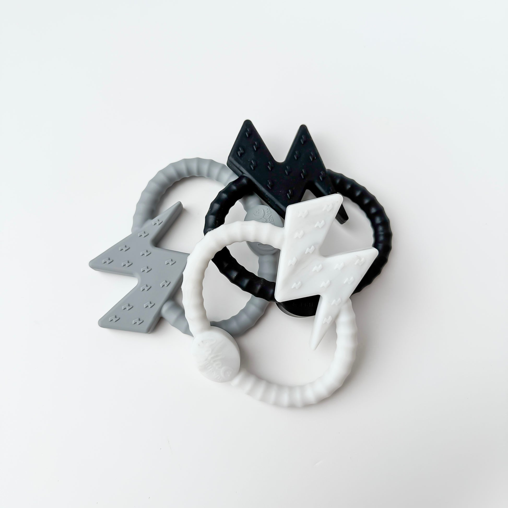 Bolt Silicone Sensory Teether: Lightning Relief for Tiny Teeth. Explore, Soothe, and Look Rad Doing It! Unleash the Power of Safe Teething.