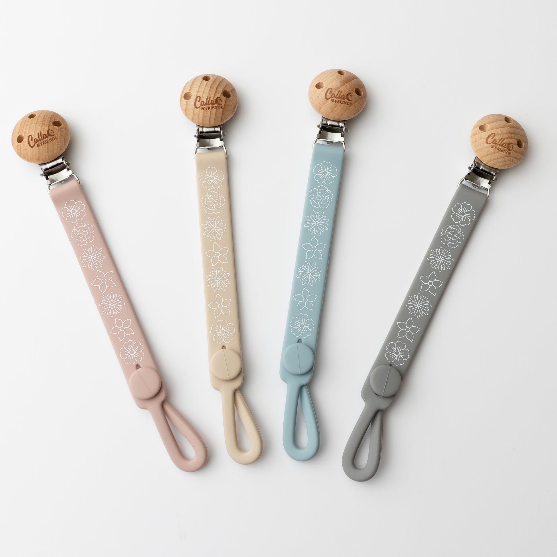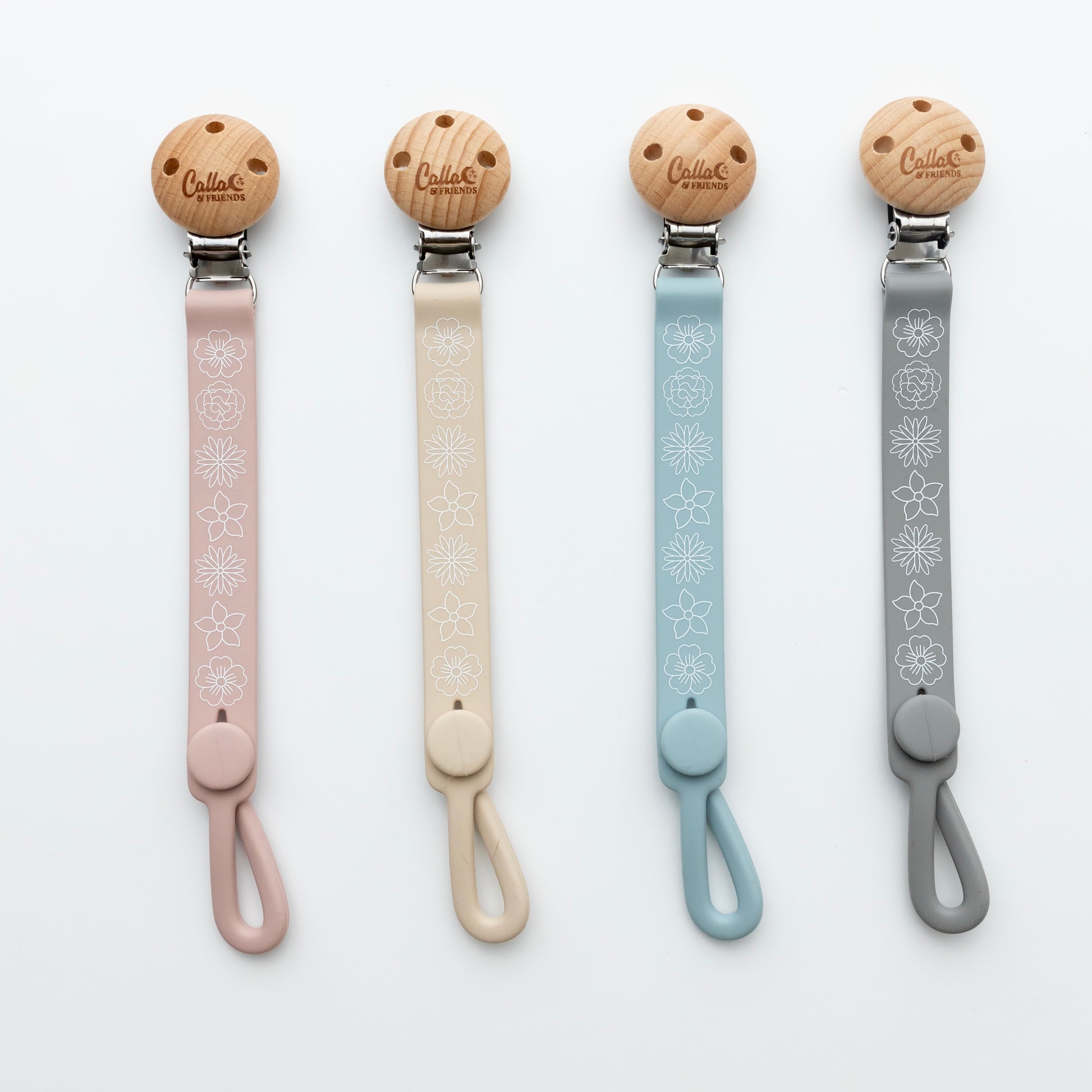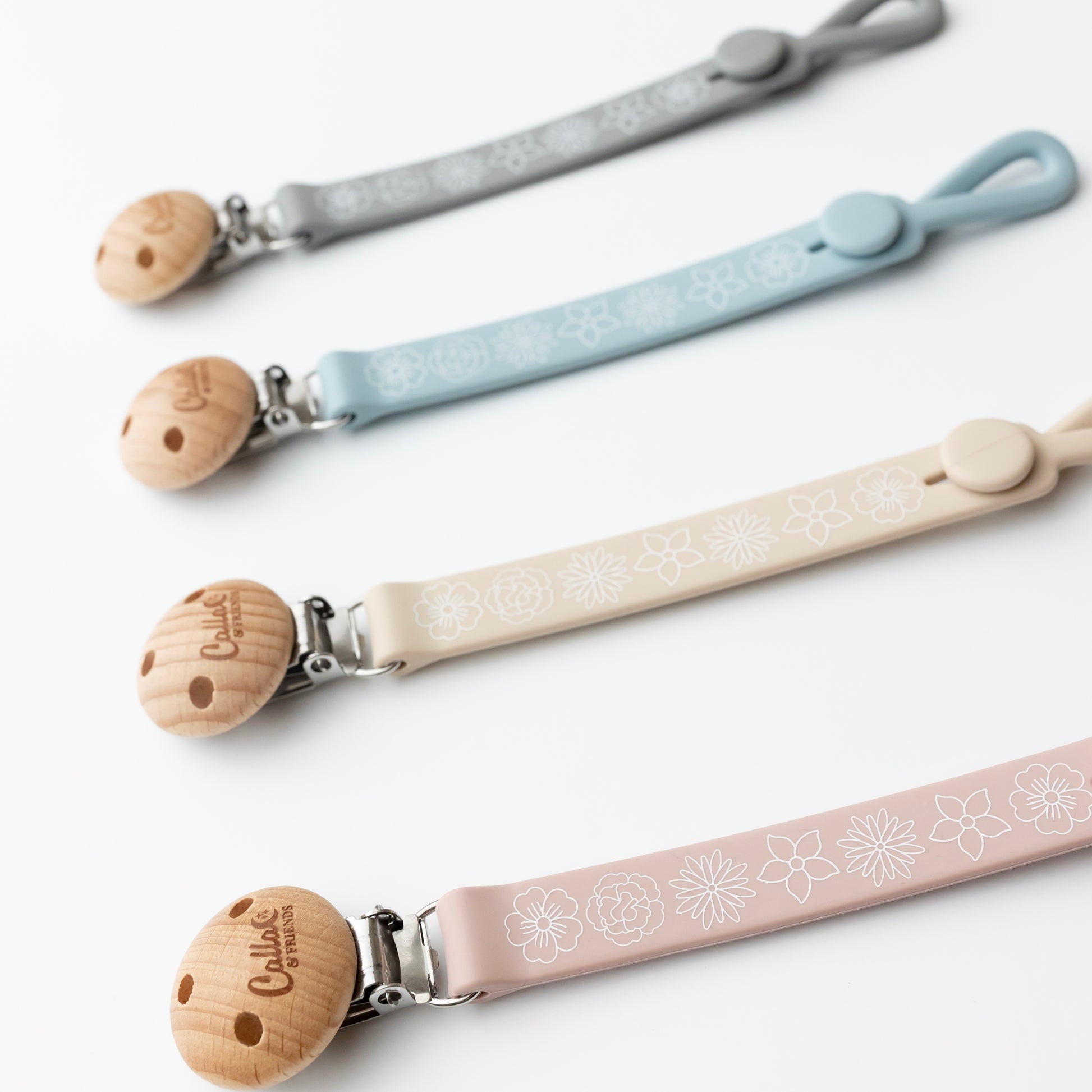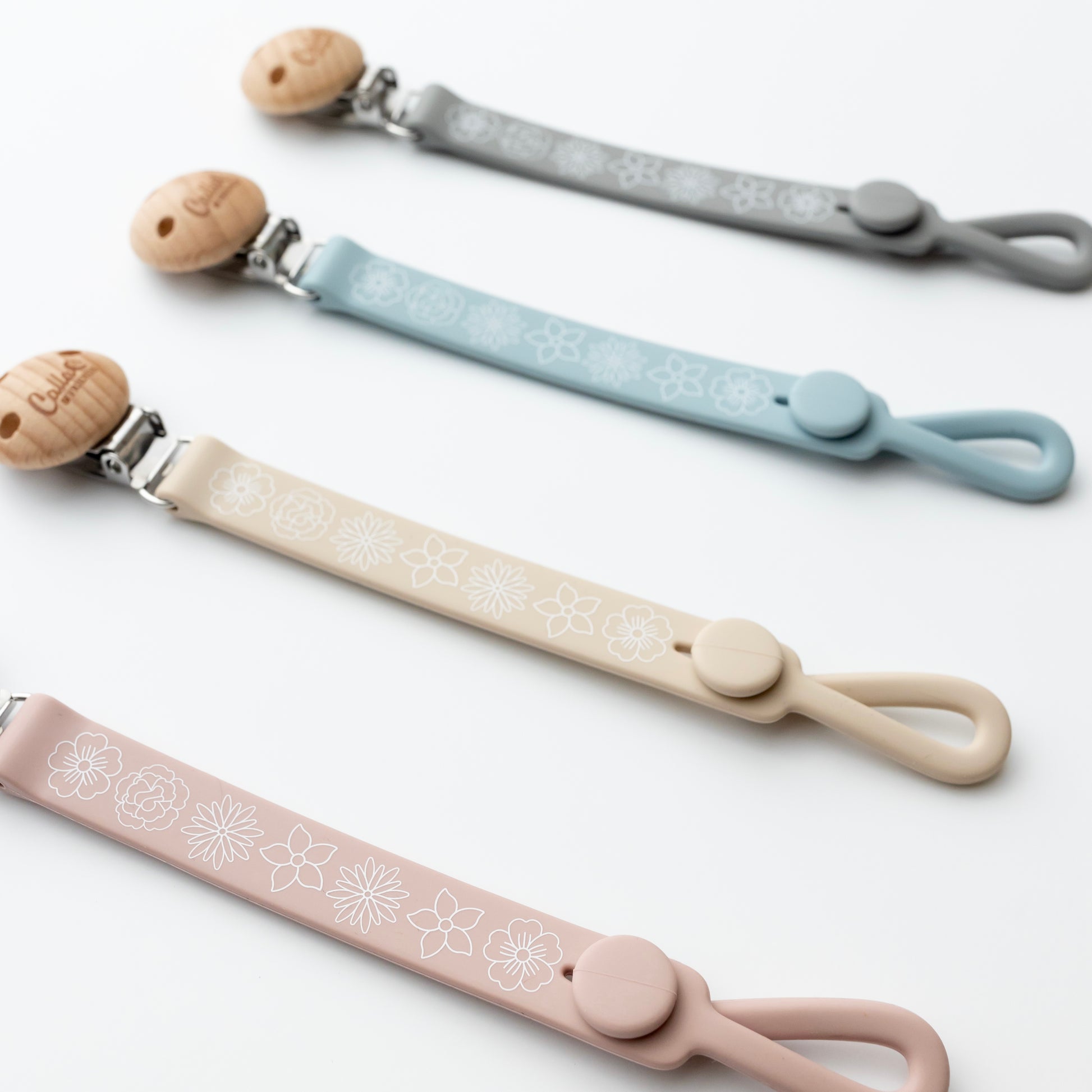 The next level of Nash clips in fun prints, featuring our loved blossom print. This clip combines style and functionality to keep your little one pacifiers, teethers, & toys within reach and off the ground.