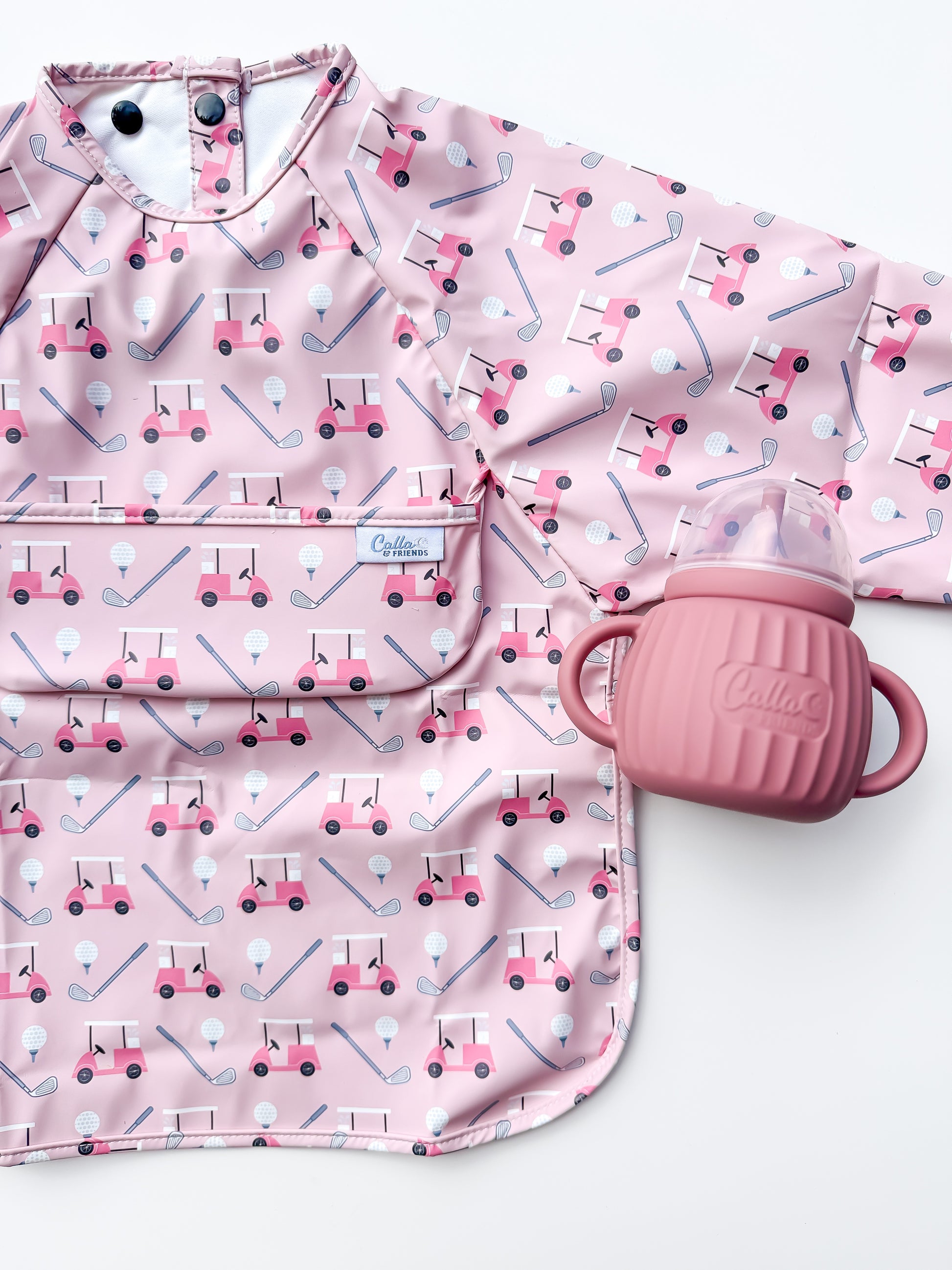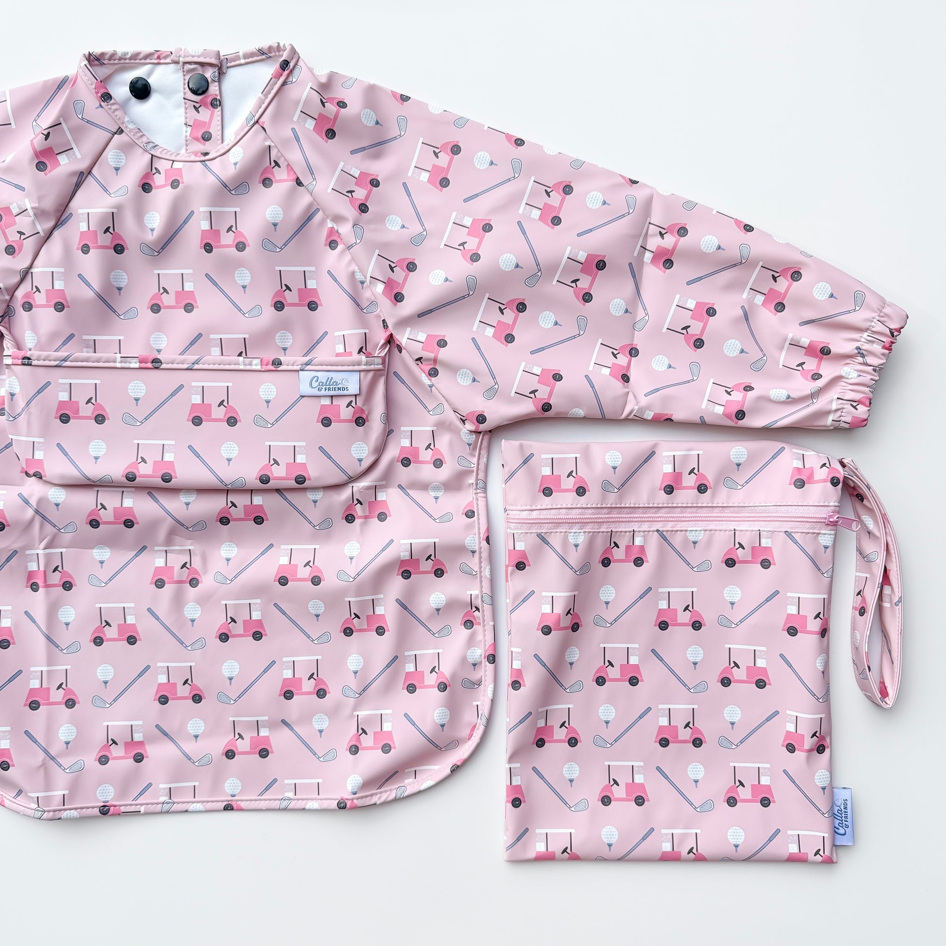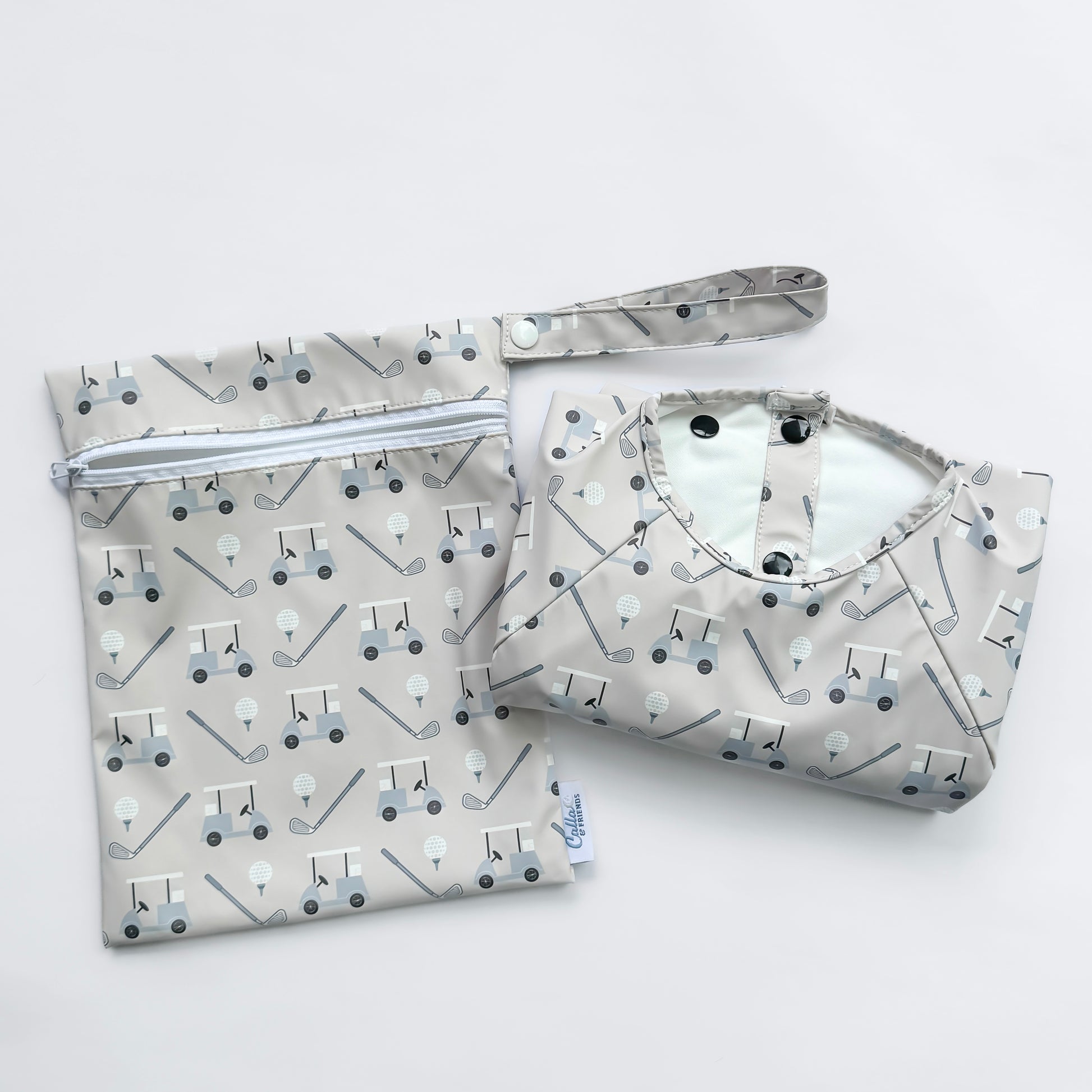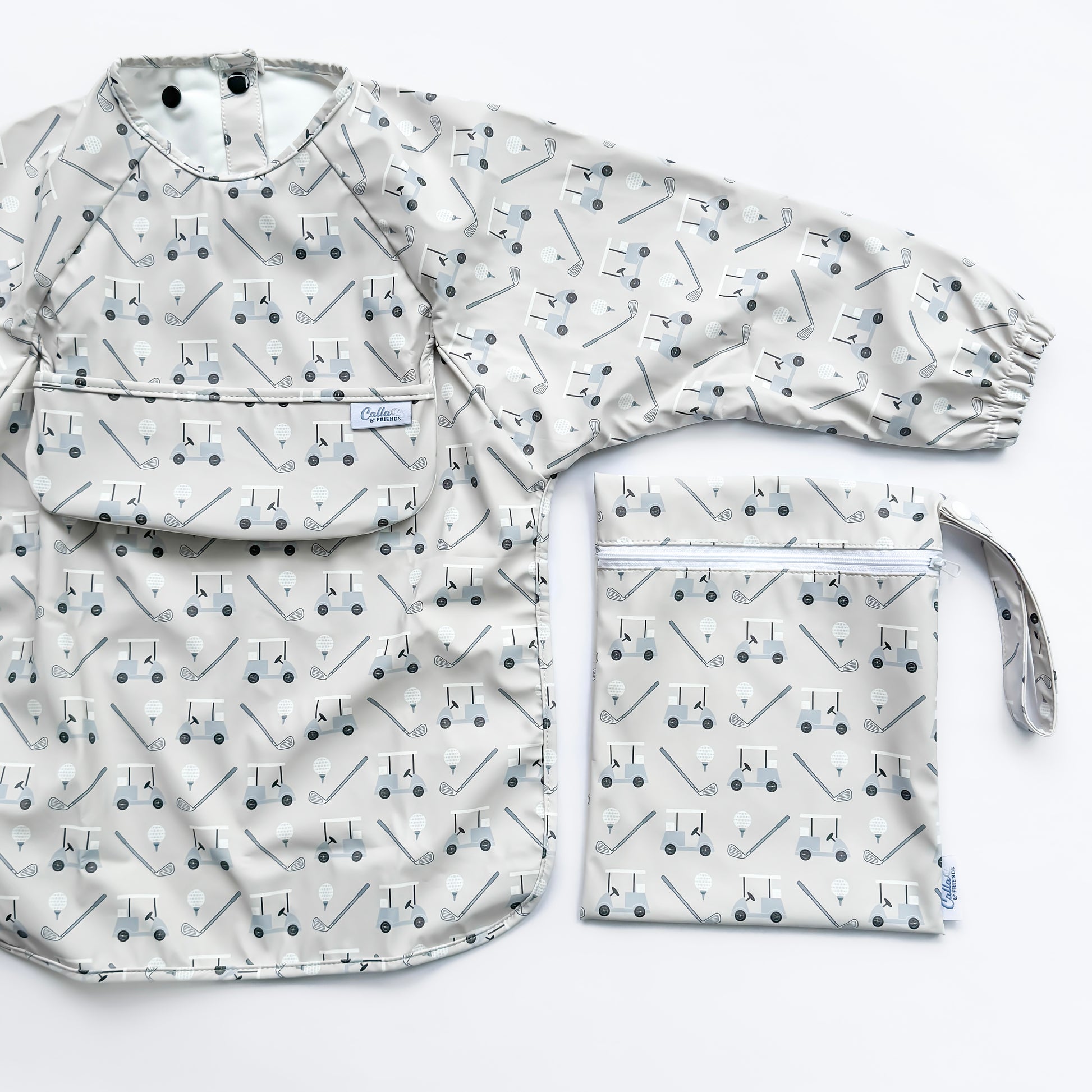 Perfect for your little one's meal-time, water table adventures, messy crafts, or any other time you want to keep those cute clothes clean. Not only do these long sleeve bibs match all of their cute clothes, they’re also highly functional. Each bib comes in a matching wet/dry bag making it perfect for on the go. Simply place your dirty bib back in its bag & keep your diaper bag clean. With their waterproof design and catch-all pocket, they effortlessly keep your baby's clothes clean and dry. The pocket even folds under to fold flat when not needed for crafts or sensory tables. The multi-snap neck closure & elastic cuffs ensure a secure and adjustable fit that grows with your little one, making them perfect for every stage of their development.