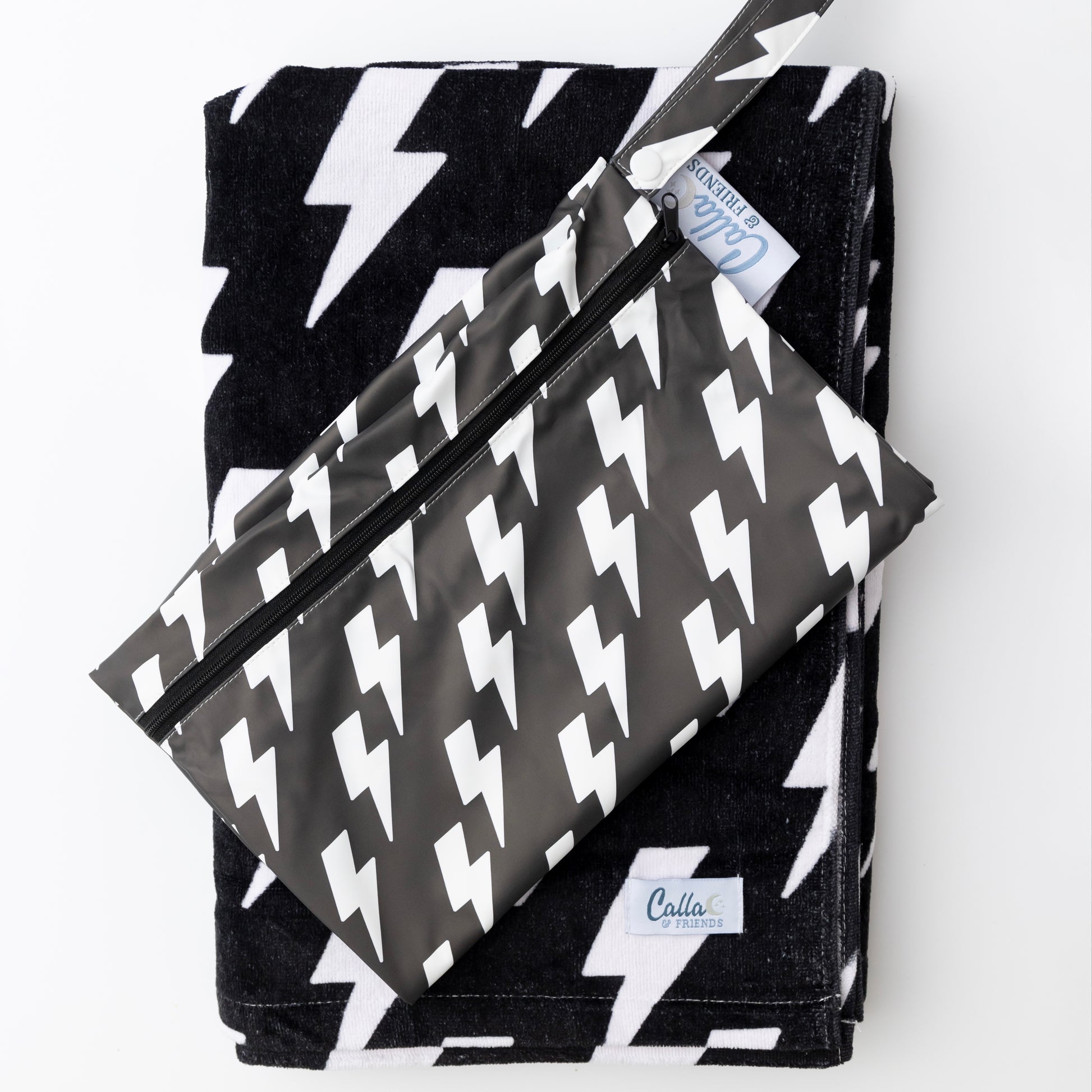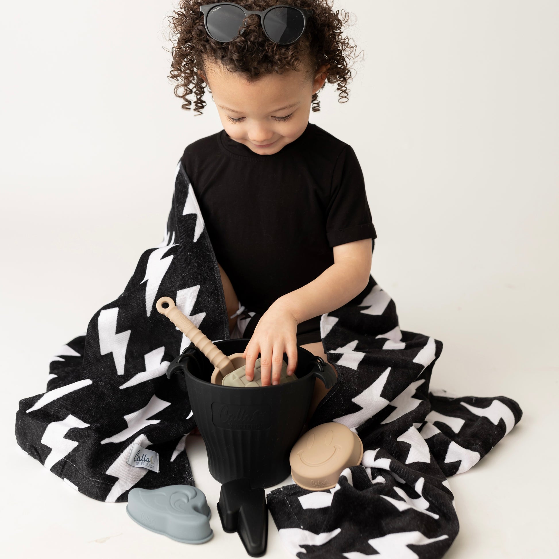 The Kenzie Beach Towel Collection, specially crafted for kids who love fun in the sun. Experience carefree fun, as each towel is not only crafted from 100% cotton with a sand resistant weave but is also accompanied by a matching wet bag for effortless travel and storage. With a variety of colors & prints to choose from, your little one can bring their unique style to the beach, pool, or any outdoor adventure. Dive into summer with the Kenzie Beach Towel Collection - where comfort meets style for your little ones!
